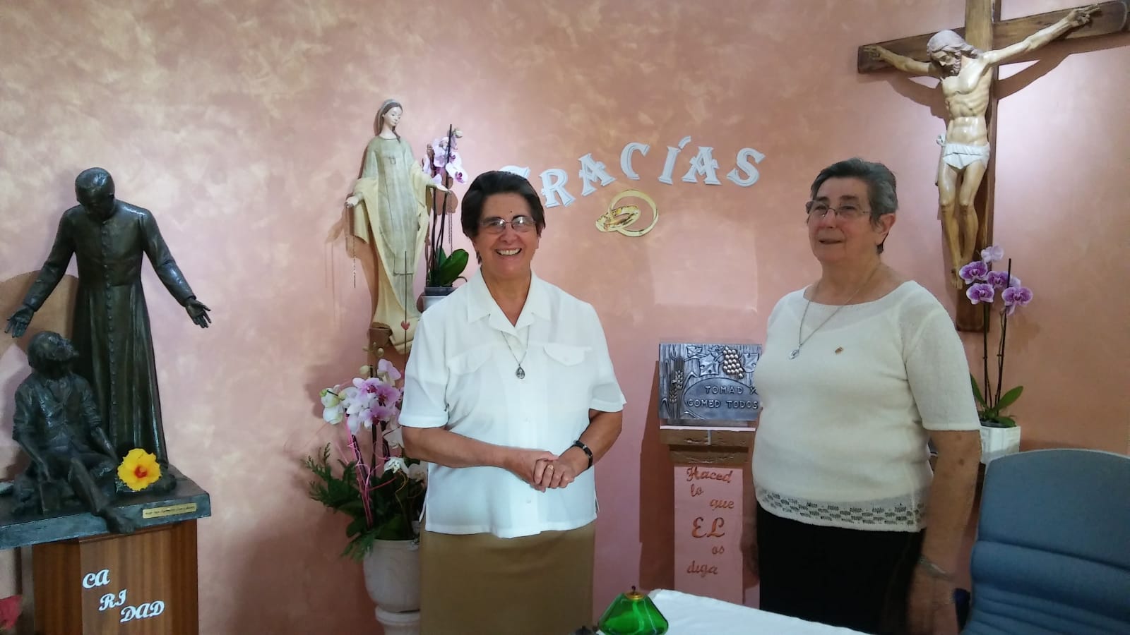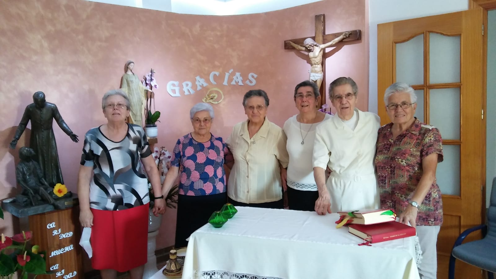 Que Marìa, nuestra Madre, la mujer fiel y de corazón grande, nos acompañe en estos días de fiesta, y en esta nueva etapa de la vida de nuestras hermanas que celebran sus bodas. Abajo nombramos a cada una, para que las tengamos presente en nuestra oración.