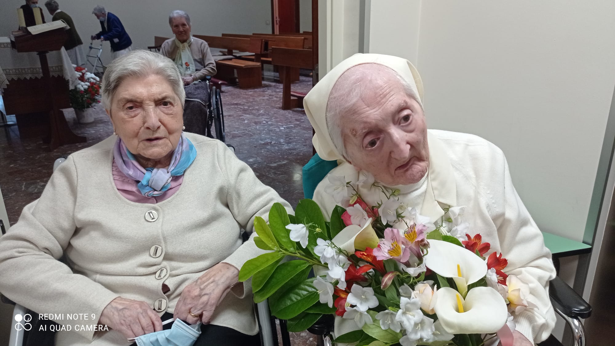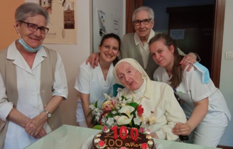 Ella se ha sentido feliz hoy, muy feliz. La eucaristía le ha llenado de paz, de gozo, de serenidad… la comunidad, el capellán, el personal de la casa… cada cual con lo suyo, ha proyectado en ella ese reconocimiento positivo por sus 100 años de vida.