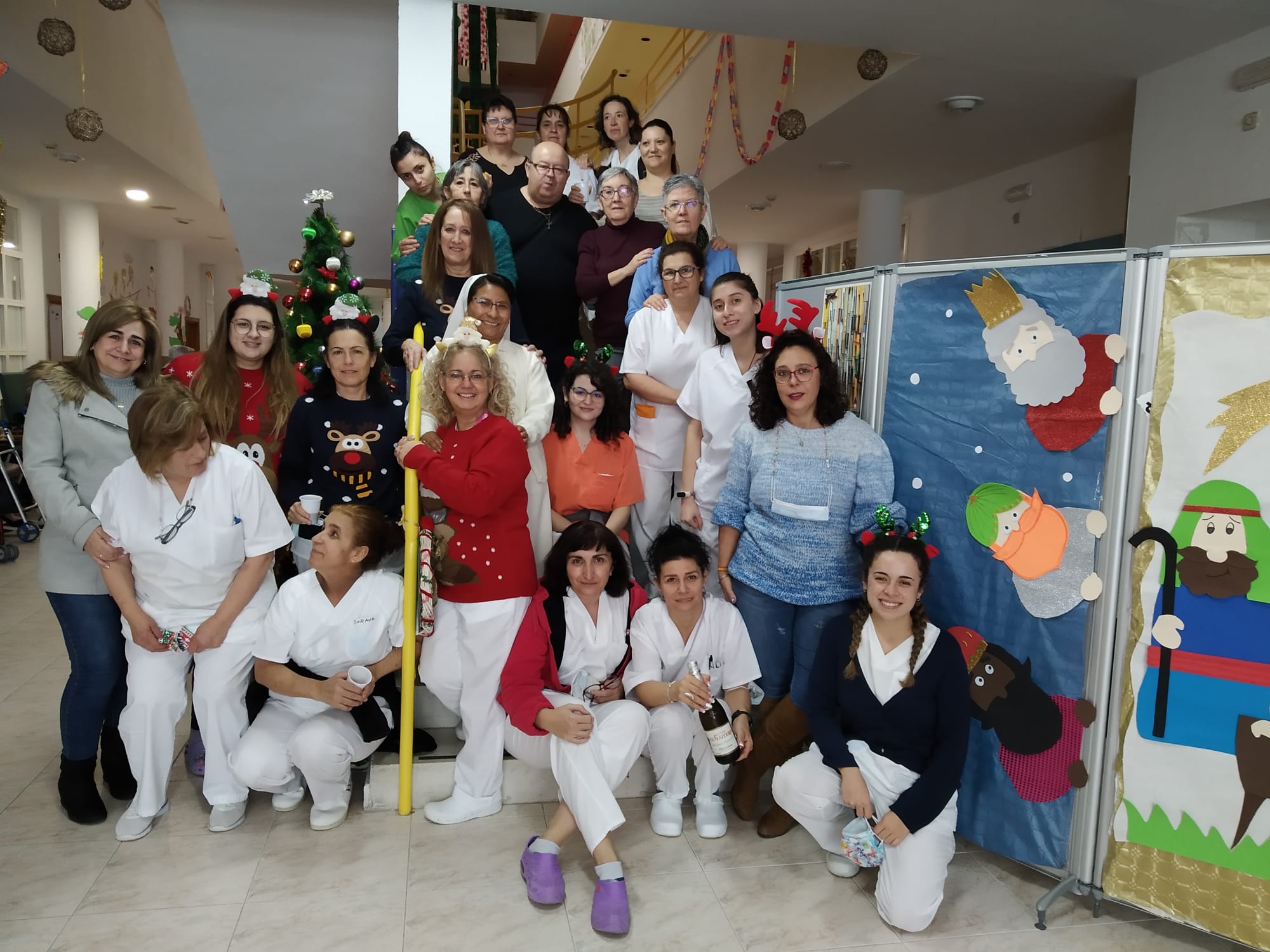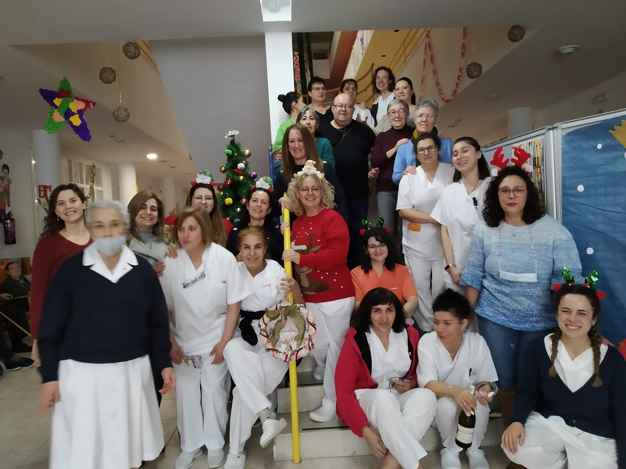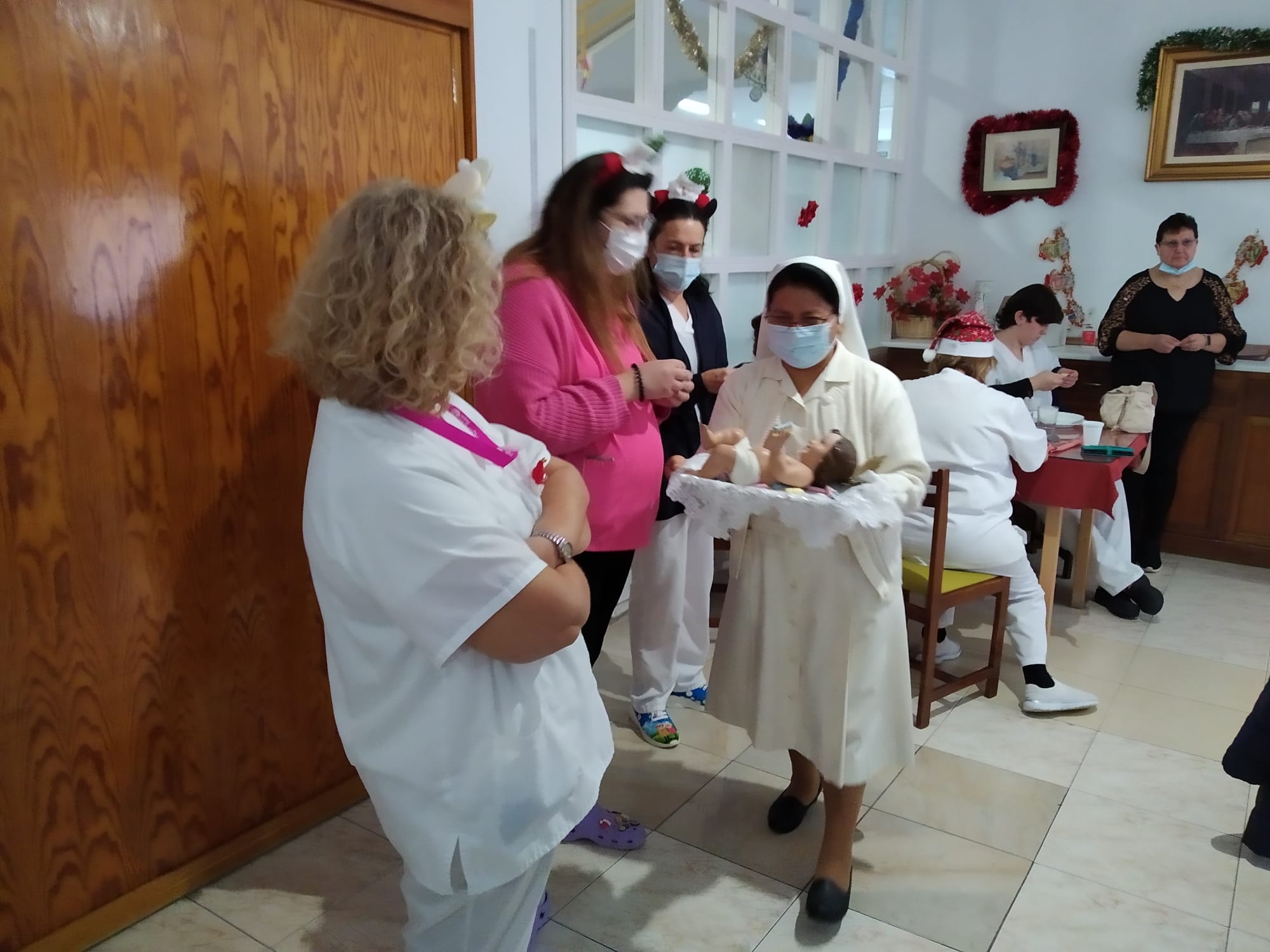 Celebrando la Navidad en fraternidad residentes, hermanas y trabajadores…..
