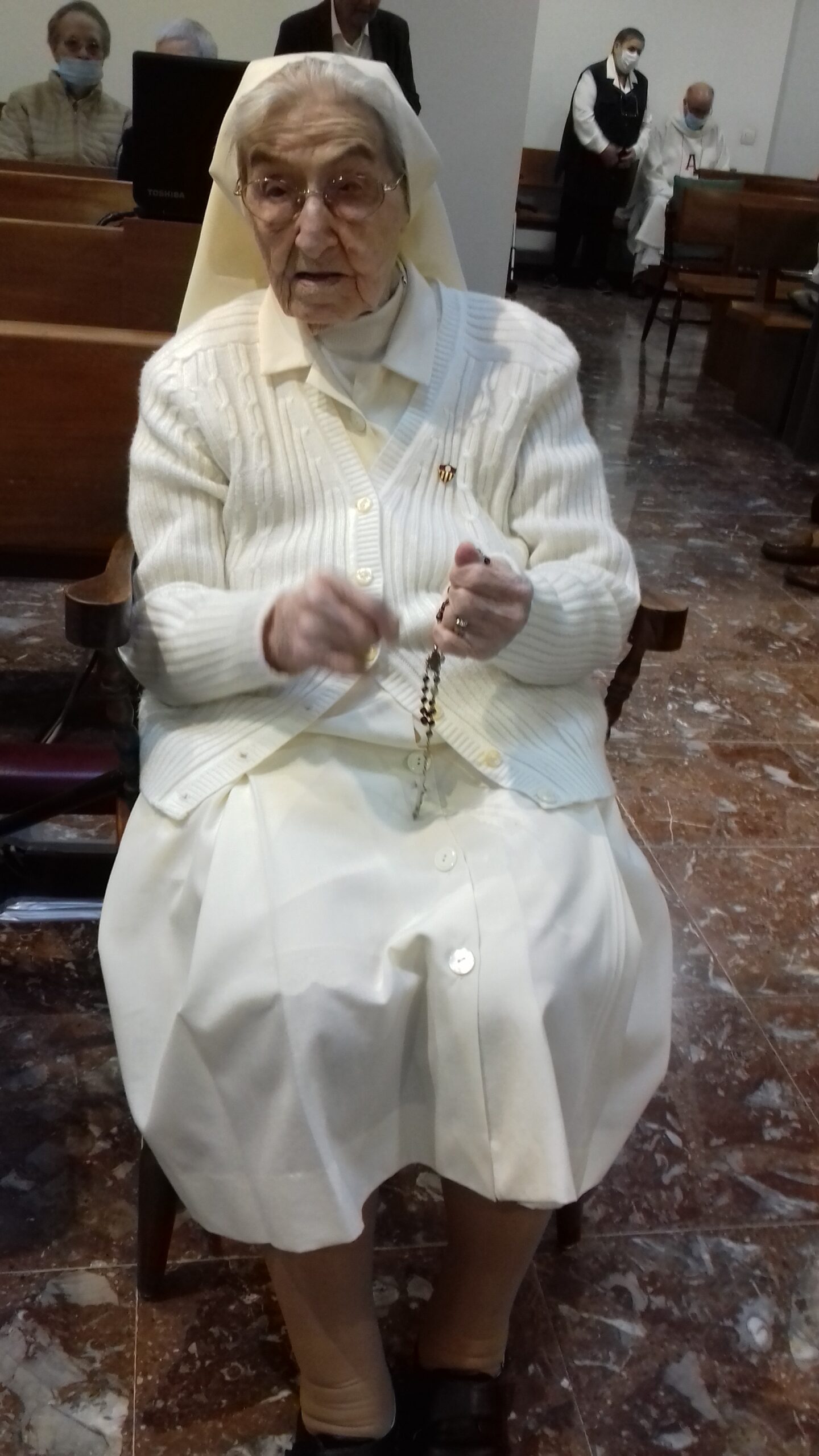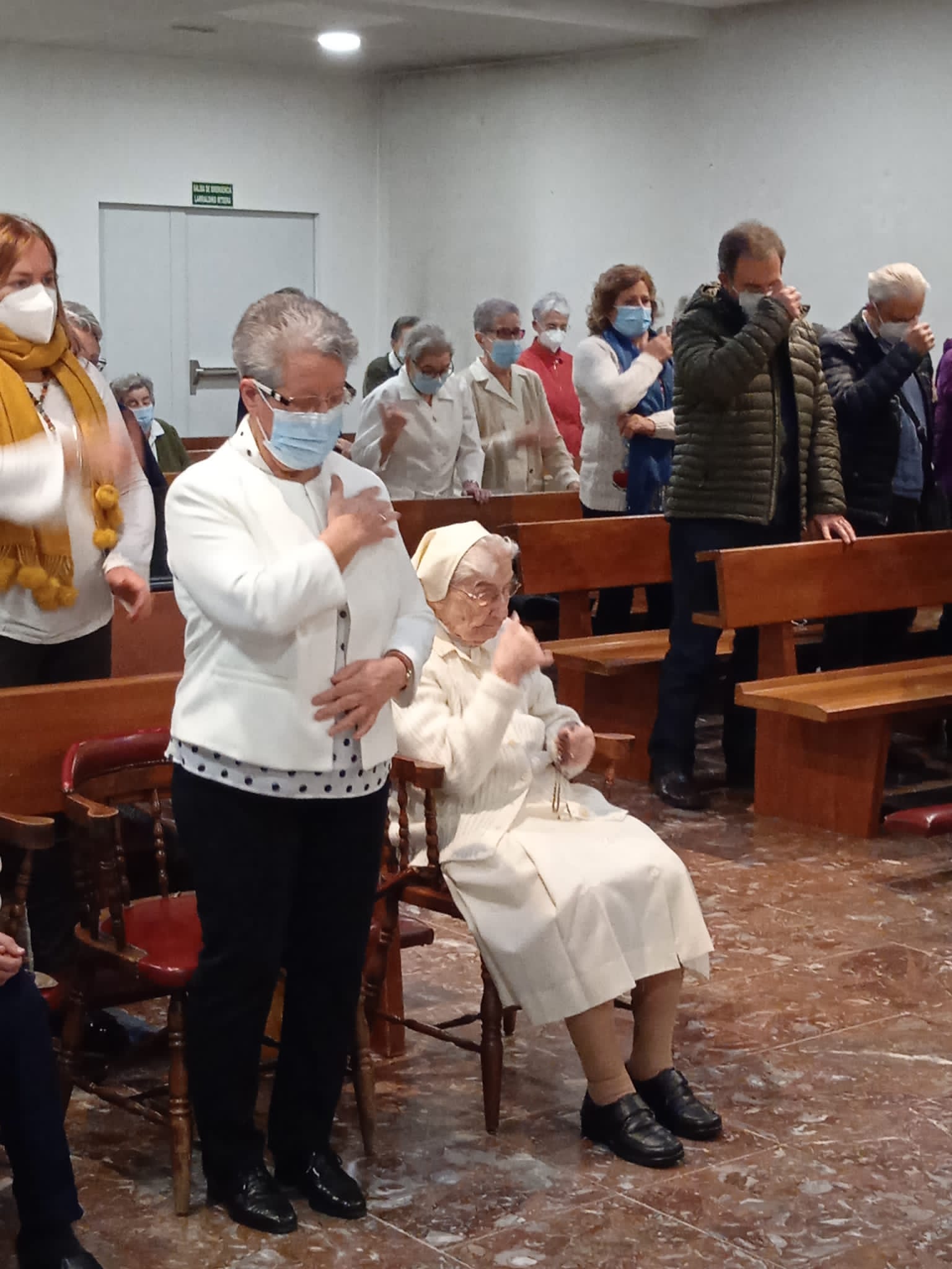 Vivimos la fiesta con alegría y emoción contemplando a Sor Mª Puy: su serenidad, su sonrisa, su sencillez, sin soltar el Rosario de la mano y agradeciendo a todos su cercanía y su cariño.