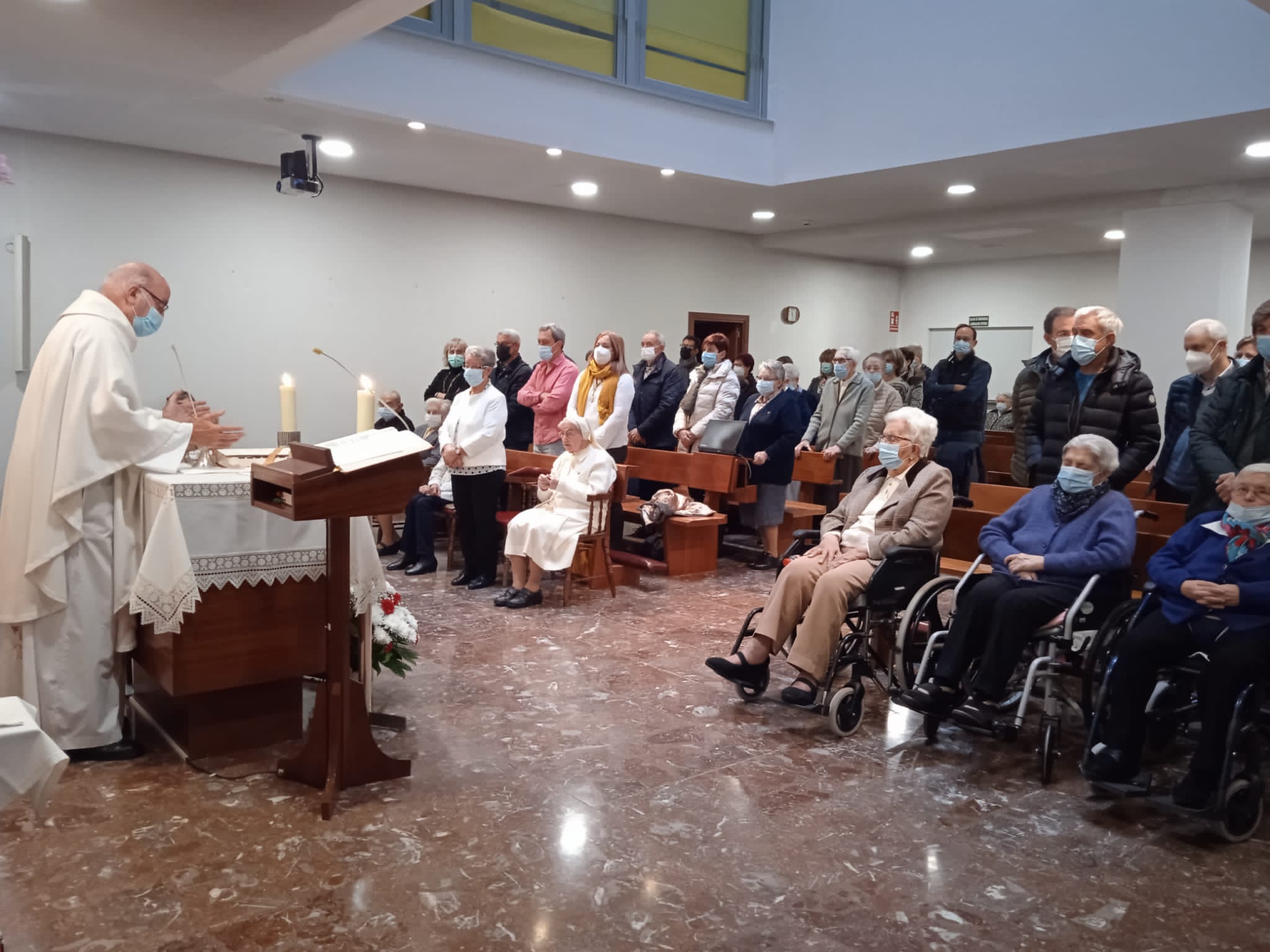 Celebramos la Eucaristía de Acción de Gracias a Dios, preparada con mimo y con detalle por la Comunidad. Y terminamos con una pequeña fiesta en el comedor acompañadas de sus sobrinos, que se desplazaron desde distintos puntos para acompañar y celebrar con su tía este acontecimiento.