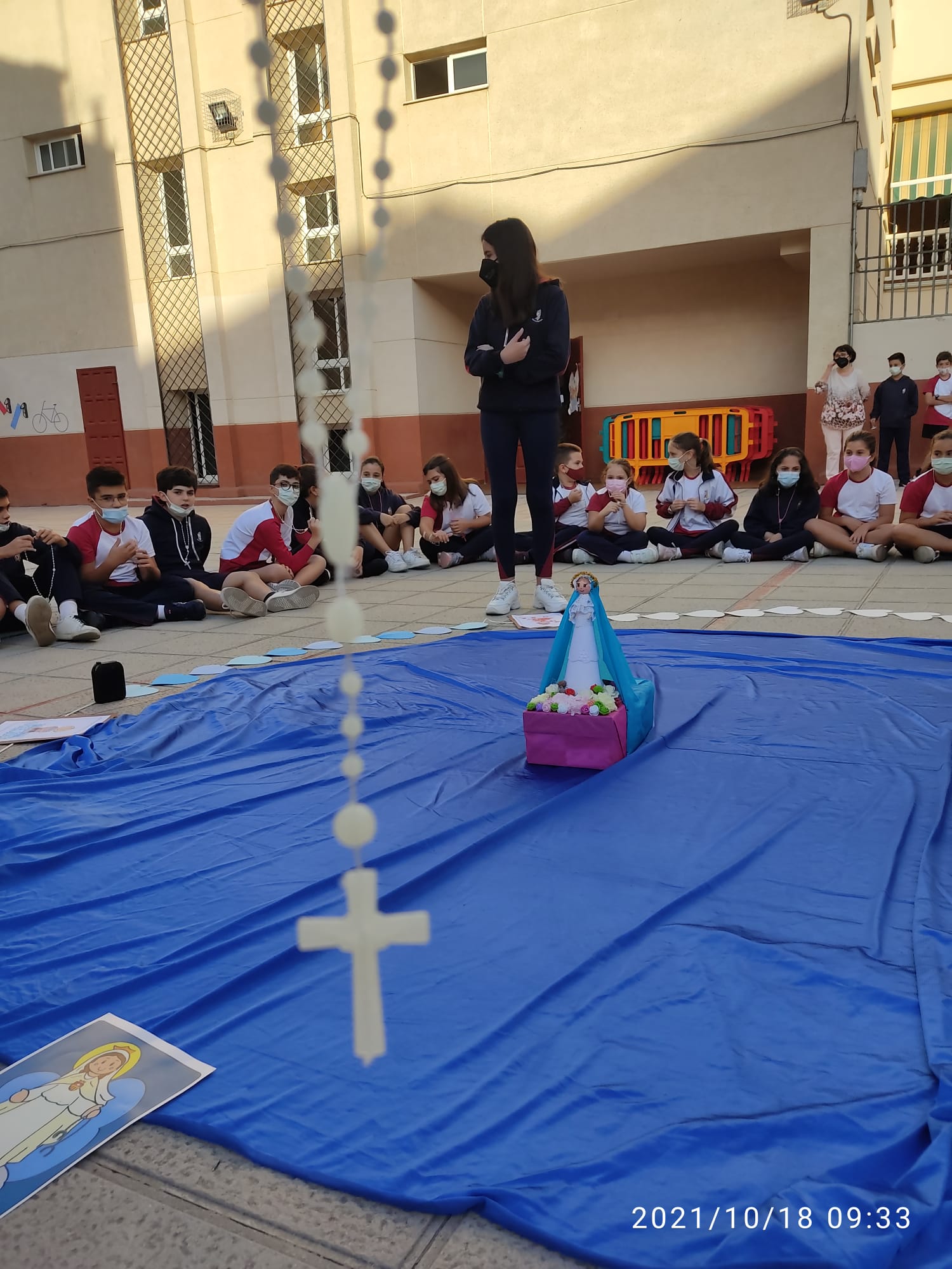 Este mes está dedicado al Rosario representado por los cinco continentes, es un rosario misionero. Todos necesitan de nuestra oración. Cada Ave María que rezamos es una rosa que dejamos en el corazón de la Virgen.